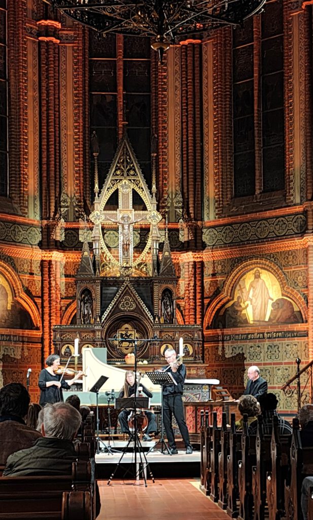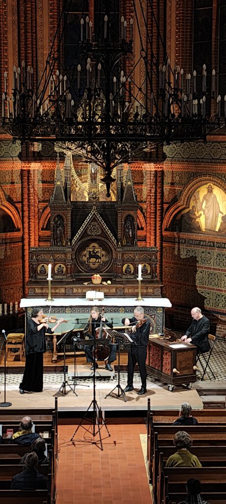 Das Barockensemble Incontro spielt in diesem Konzert in der reizvollen Besetzung Julia Huber (Barockvioline), Alexandra Kraus (Flauto dolce), Isabell Müller-Hornbach (Barockvioloncello) und Christian Pfeifer (Cembalo und Truhenorgel). Dieses Programm öffnet uns ein Fenster in eine Welt, in der Musik als Spiegel menschlicher Empfindungen verstanden wurde: mal innig und zart, mal voller Glanz und Energie. Auf dem Programm stehen Werke von Purcell, Bull und Rossi. Der Eintritt ist frei, Spenden werden erbeten.