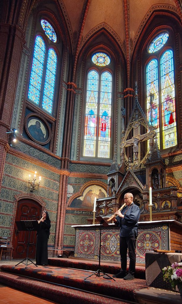 Riley Lee und Alexandra Kraus präsentieren in diesem Konzert Kompositionen für Shakuhachi, die japanische Bambusflöte. Die jahrhundertealten Werke bilden das klassische Kernrepertoire dieses Instruments und zeichnen in ausdrucksvoller und klangmalerischer Weise häufig Naturszenen und -stimmungen nach. Musikalische Naturimpressionen für Blockflöte aus dem Fluyten Lust-hof des niederländischen Barockkomponisten Jacob van Eyck und Orgelwerke, gespielt von Bergkirchenkantor Christian Pfeifer, ergänzen das Programm. Der Eintritt ist frei, Spenden werden erbeten.